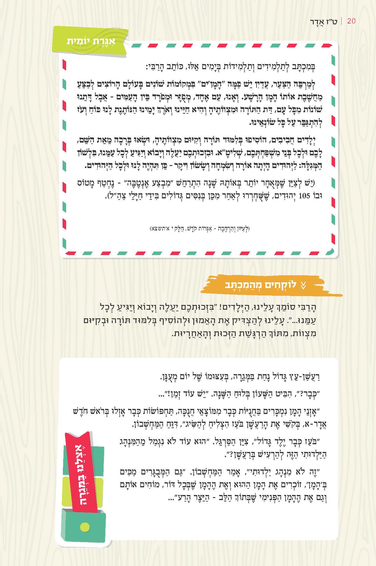 (חלק ממכתב הרבי, ערב ט"ו בשבט תשכ"ה לילדי הגן של הגב' רחל זמיר)